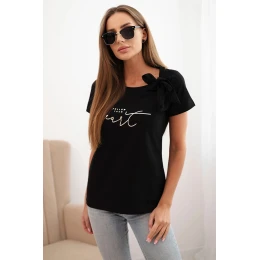 Dámská bavlněná halenka s mašlí na model 22014303 a s potiskem černá - K-Fashion