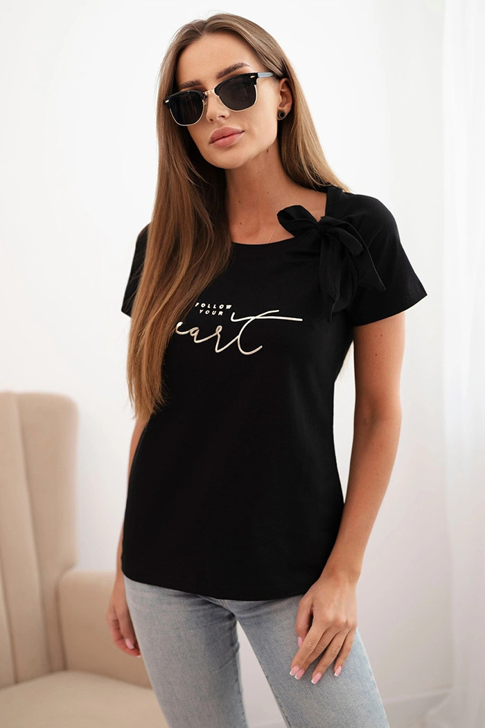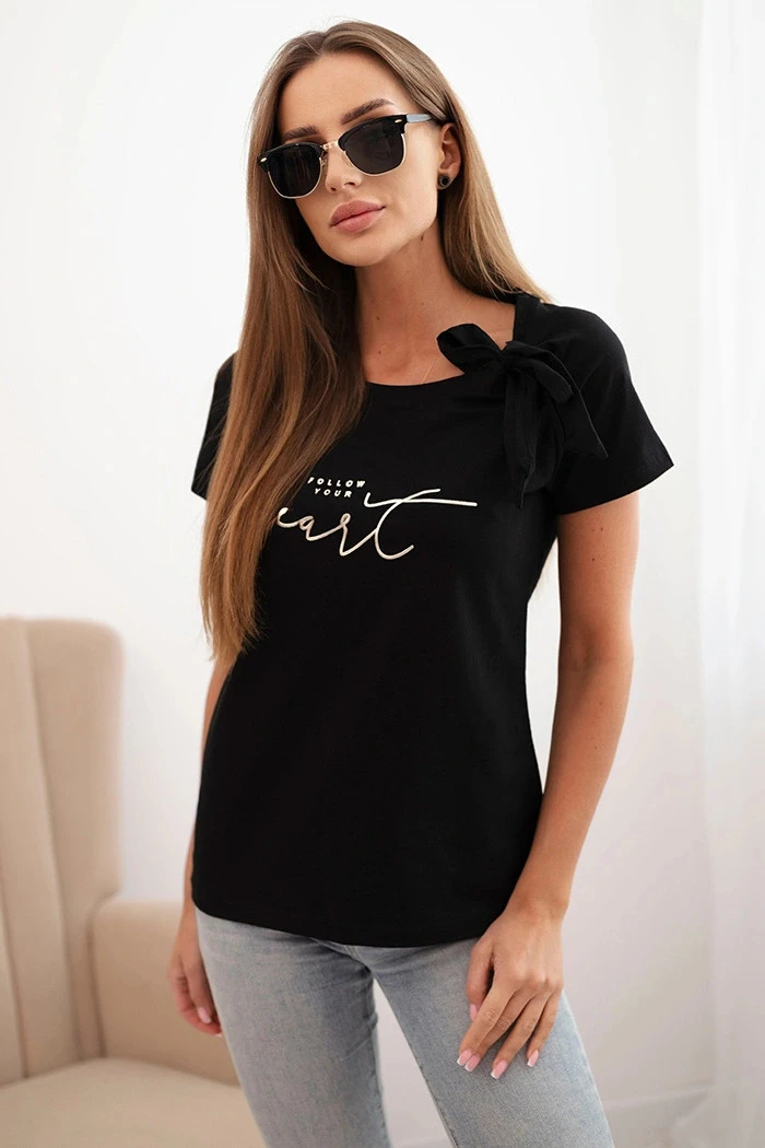 Dámská bavlněná halenka s mašlí na rameni a s potiskem černá