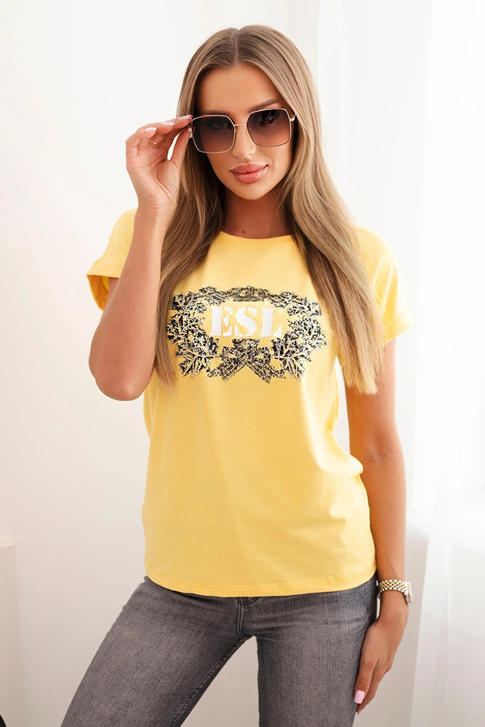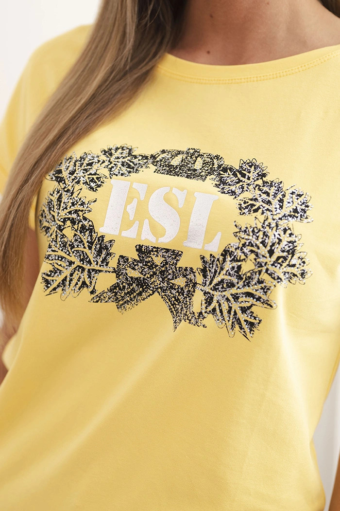 Dámská bavlněná halenka s ozdobným potiskem ESL žlutá
