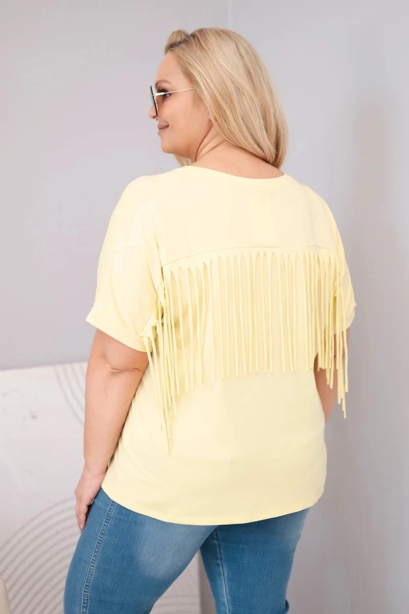 Dámská bavlněná halenka s V výstřihem a třásněmi na zádech žlutá
