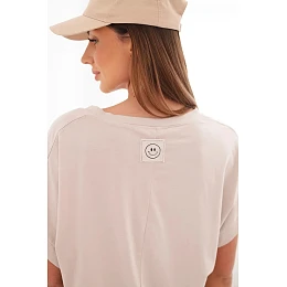 Dámská bavlněná halenka s výstřihem do V a krátkým rukávem béžová