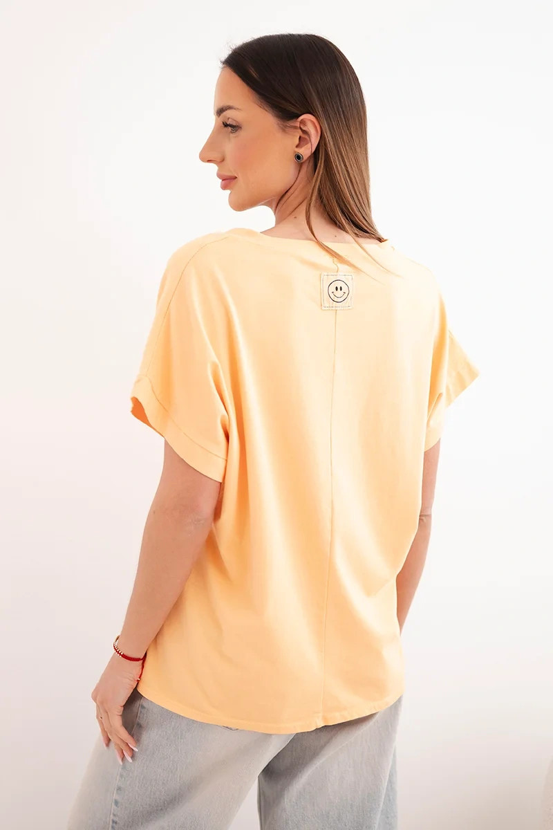 3. Dámská bavlněná halenka s výstřihem do V a krátkým rukávem broskvová