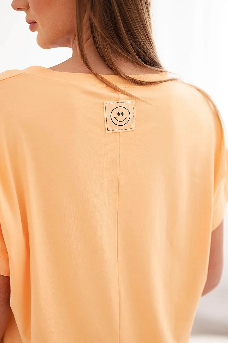 Dámská bavlněná halenka s výstřihem do V a krátkým rukávem broskvová