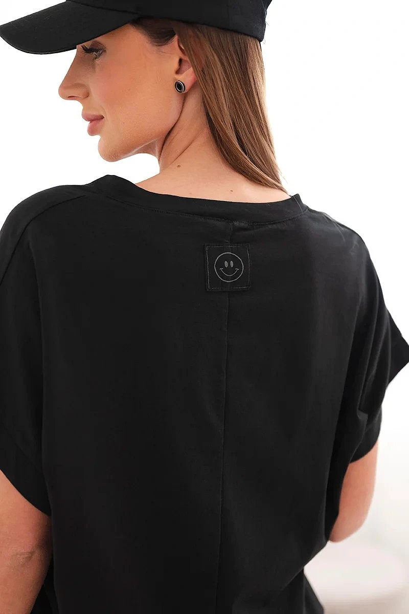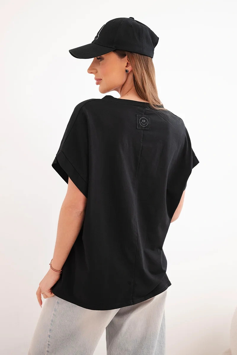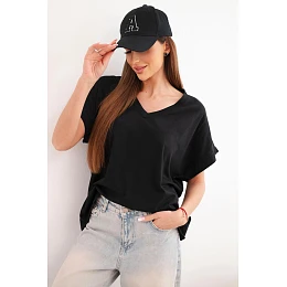 Dámská bavlněná halenka s výstřihem do V a krátkým rukávem černá
