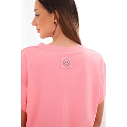 Dámská bavlněná halenka s výstřihem do V a s krátkým rukávem světle růžová