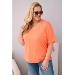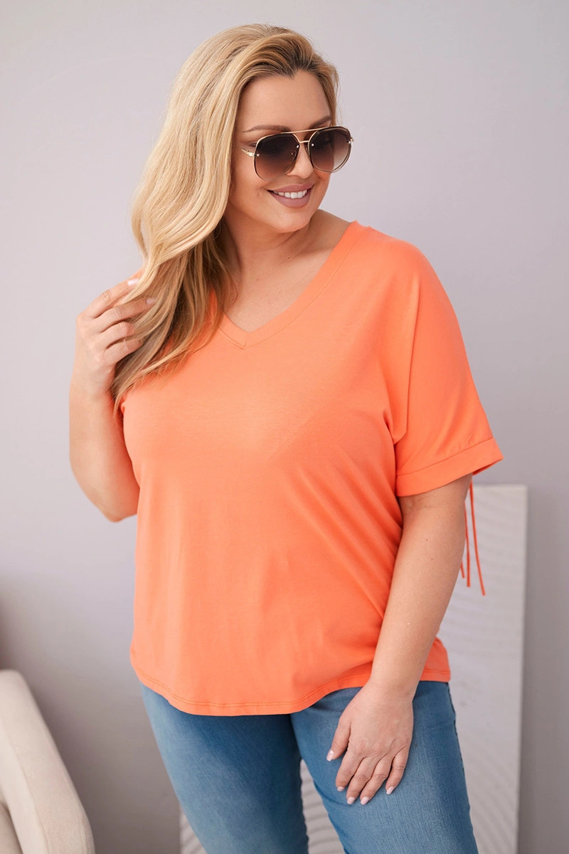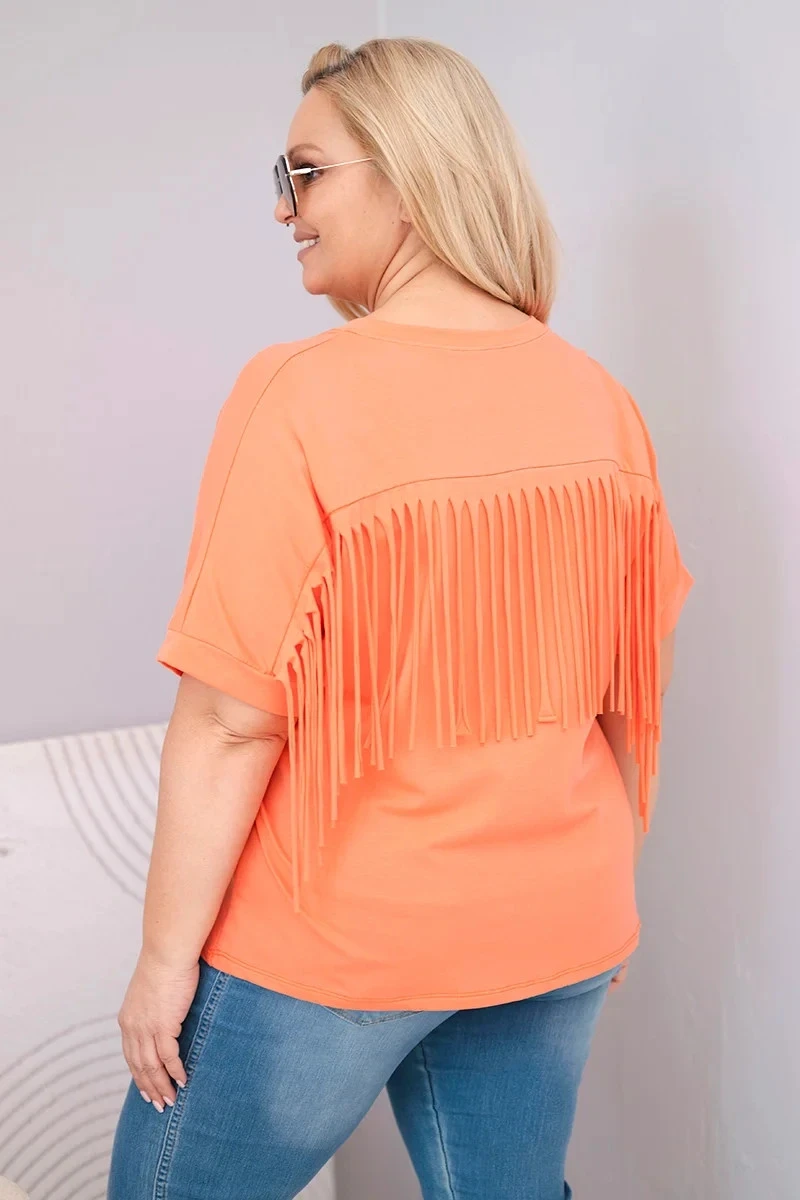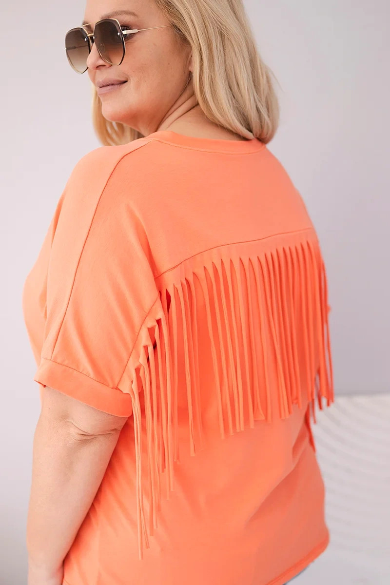 Dámská bavlněná halenka s výstřihem do V a třásněmi na zádech lososová