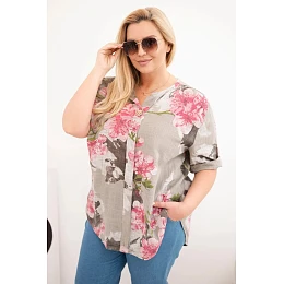 Dámská bavlněná halenka ve velikosti Plus s výstřihem do V v květinovém vzoru fango