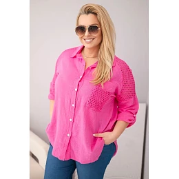 Dámská bavlněná košile Plus Size s límečkem a krajkovou vložkou růžová