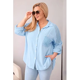 Dámská bavlněná košile Plus Size s límečkem a krajkovou vsadkou modrá