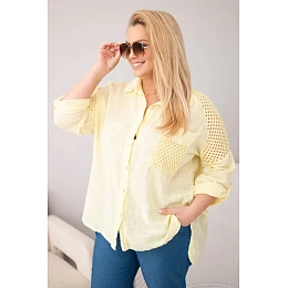 Dámská bavlněná košile Plus Size s límečkem a krajkovou vsadkou žlutá