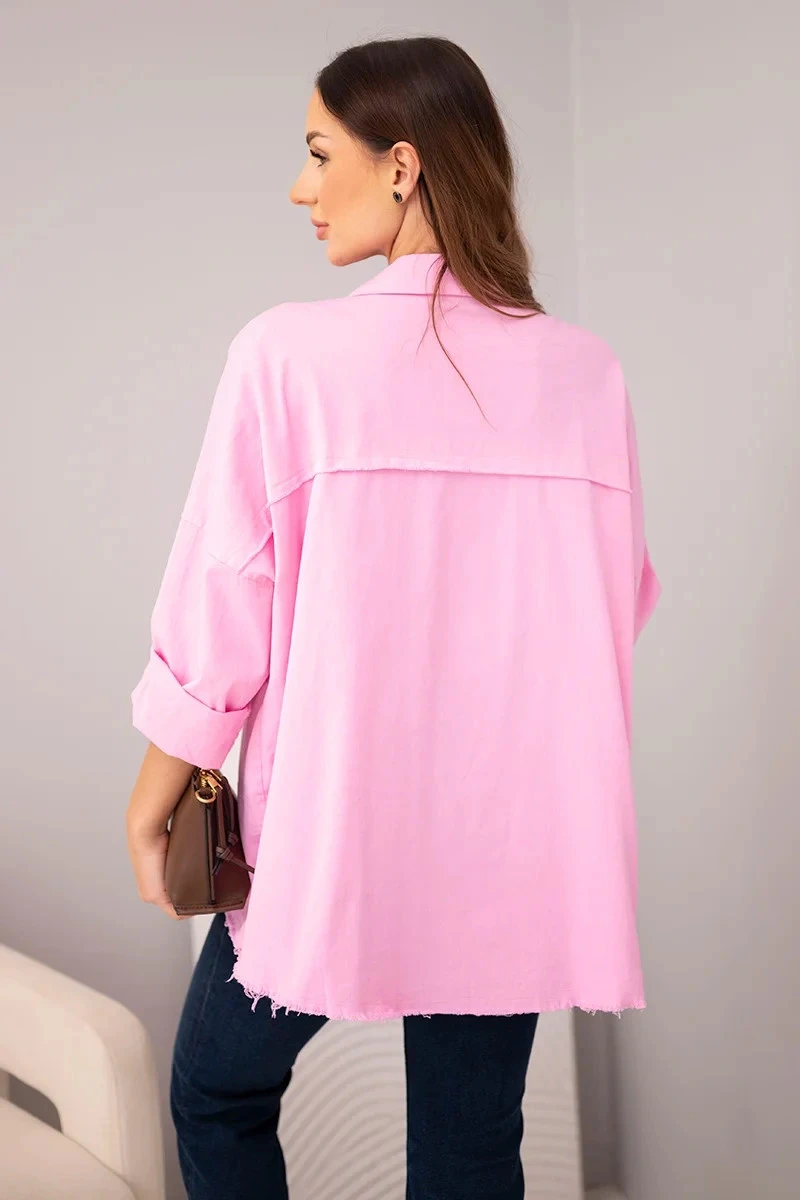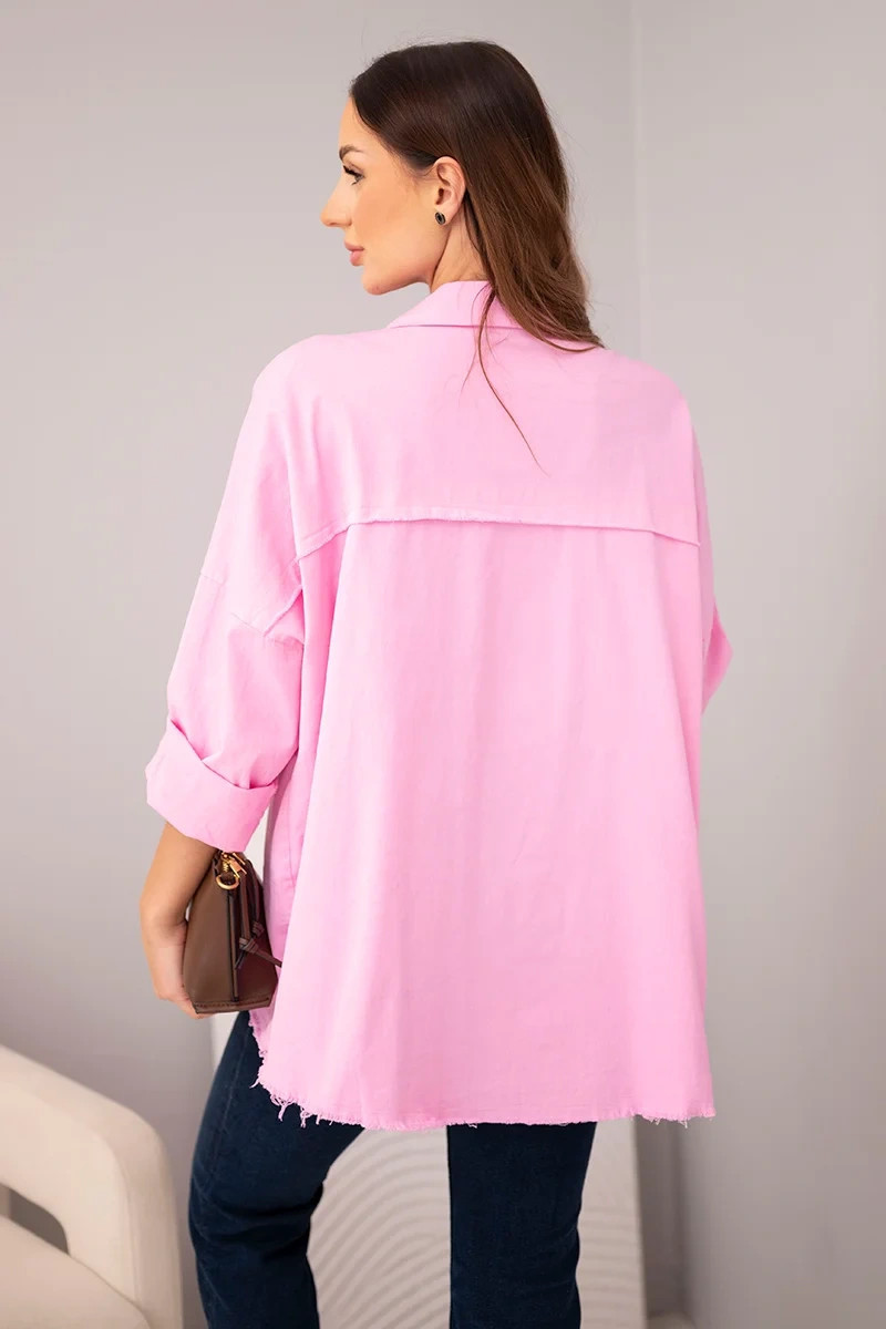 Velké našité kapsy na hrudi a syrově zakončený spodek dodávají košili módní, trochu drsný charakter. Můžete ji nosit jako lehkou bundičku nebo klasickou košili – hodí se jak k džínům, šortkám, tak k sukním. Skvělá volba na každý den, do práce nebo na výlet.