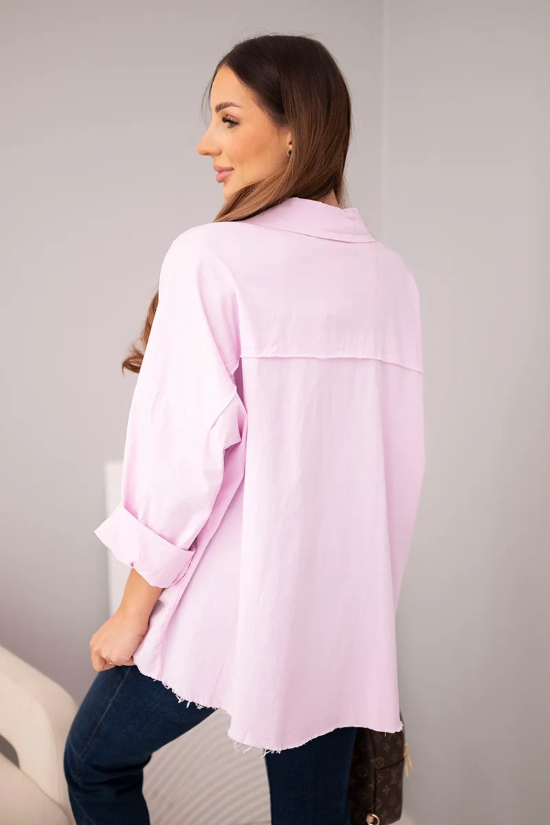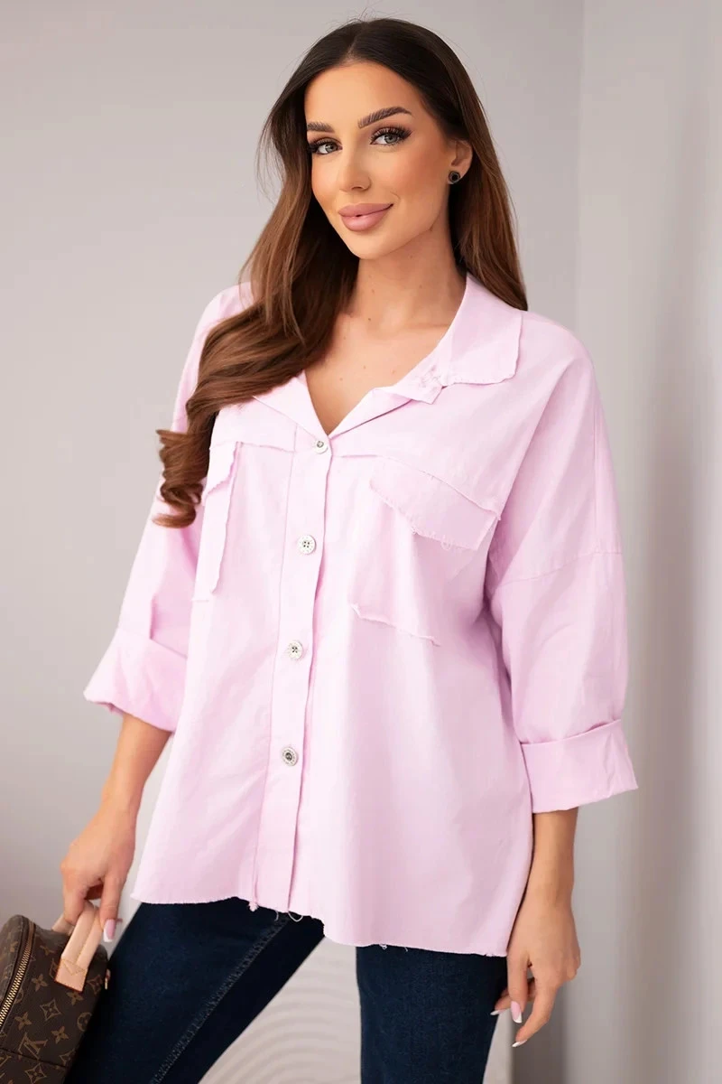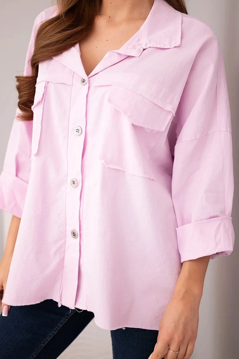 Velké našité kapsy na hrudi a syrově zakončený spodek dodávají košili módní, trochu drsný charakter. Můžete ji nosit jako lehkou bundičku nebo klasickou košili – hodí se jak k džínům, šortkám, tak k sukním. Skvělá volba na každý den, do práce nebo na výlet.
