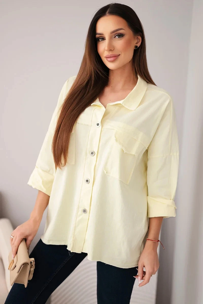 Dámská bavlněná košile s kapsami žlutá