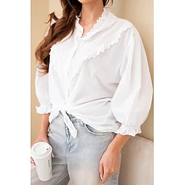 Dámská bavlněná košile s krajkou a vázáním bílá