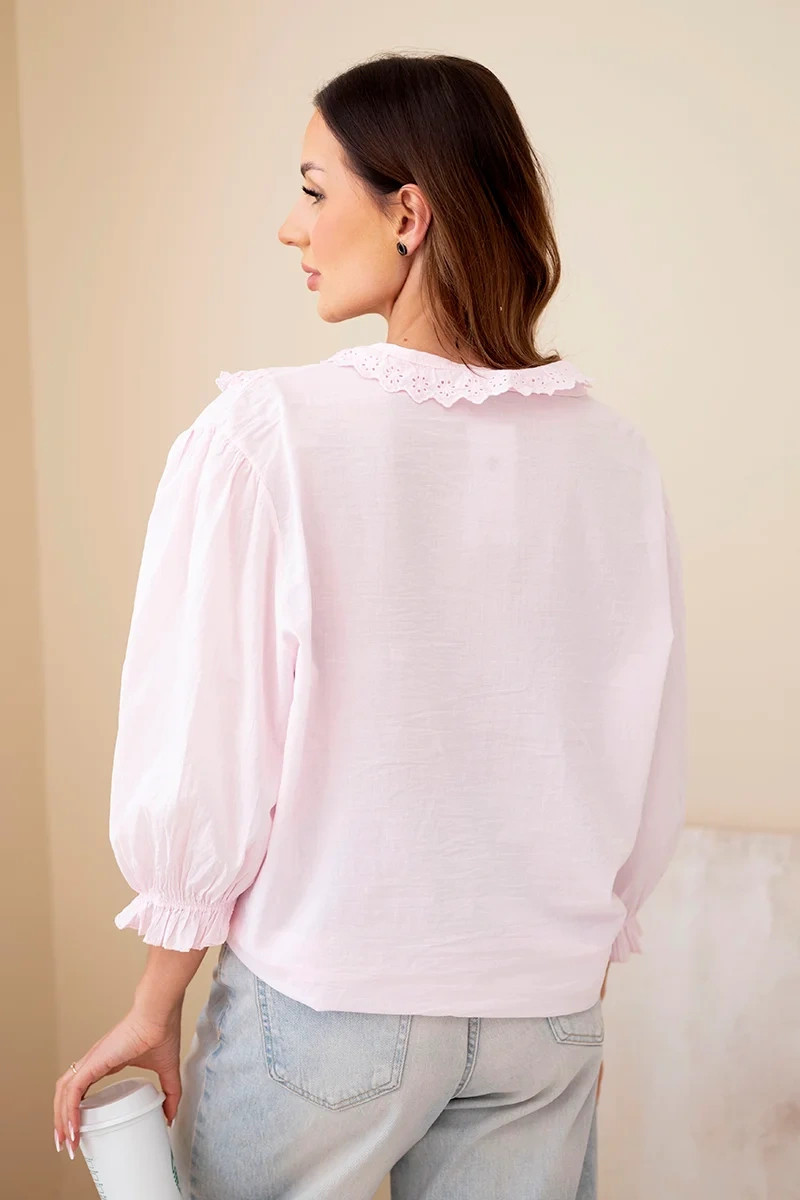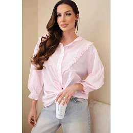 Dámská bavlněná košile s krajkou a zavazováním bonbónově růžová