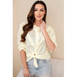Dámská bavlněná košile s krajkou a zavazováním žlutá