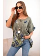 Dámská bavlněná košile s květinovým vzorem tmavé khaki