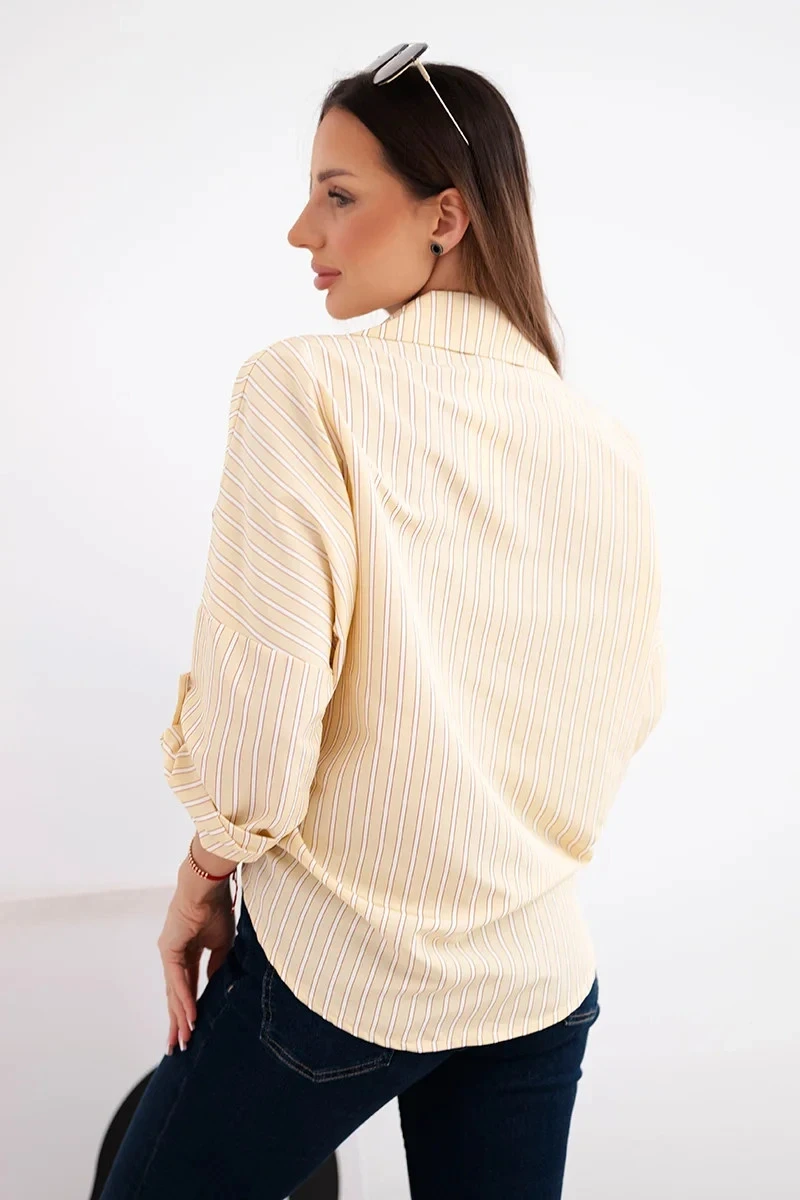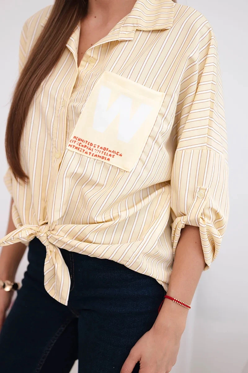 Dámská bavlněná košile s pásky a vázáním žlutá
