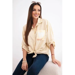 Dámská bavlněná košile s pásky a vázáním žlutá