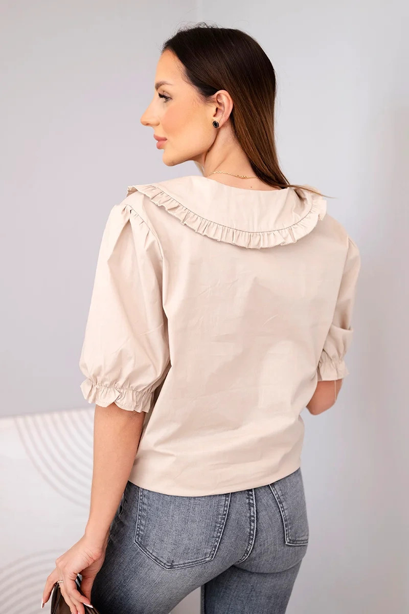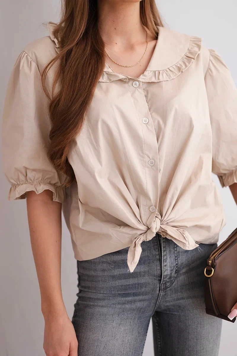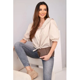 Dámská bavlněná košile s volánkem a vázáním béžová