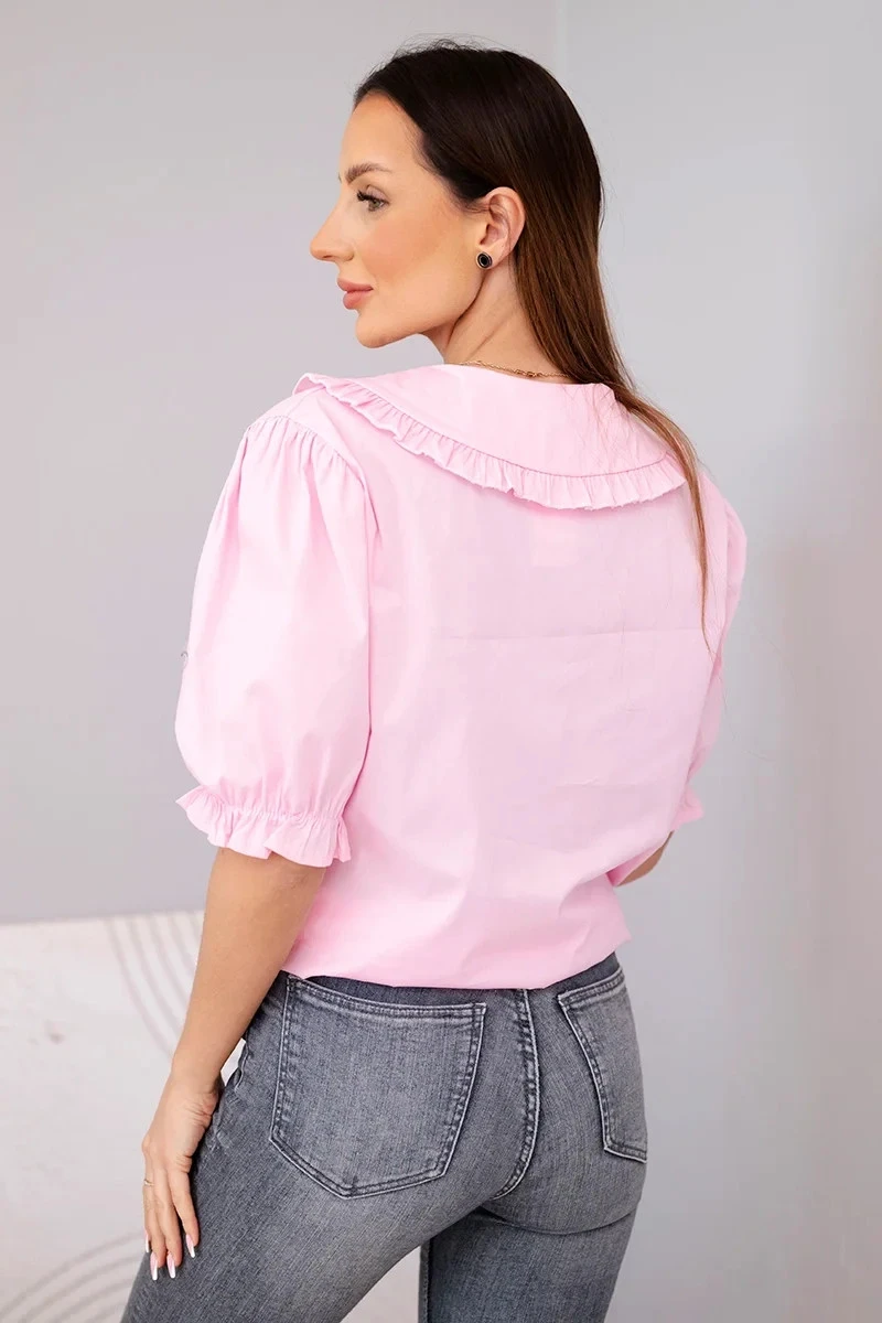 Dámská bavlněná košile s volánkem a vázáním světle růžová