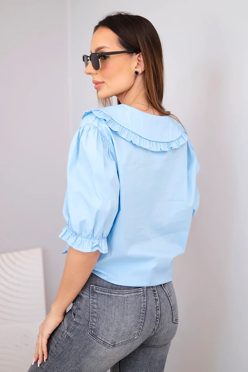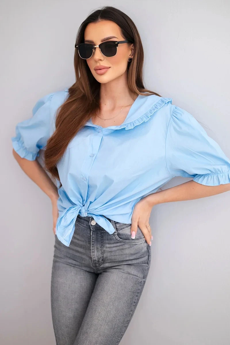 Dámská bavlněná košile s volánkem a zavazováním modrá