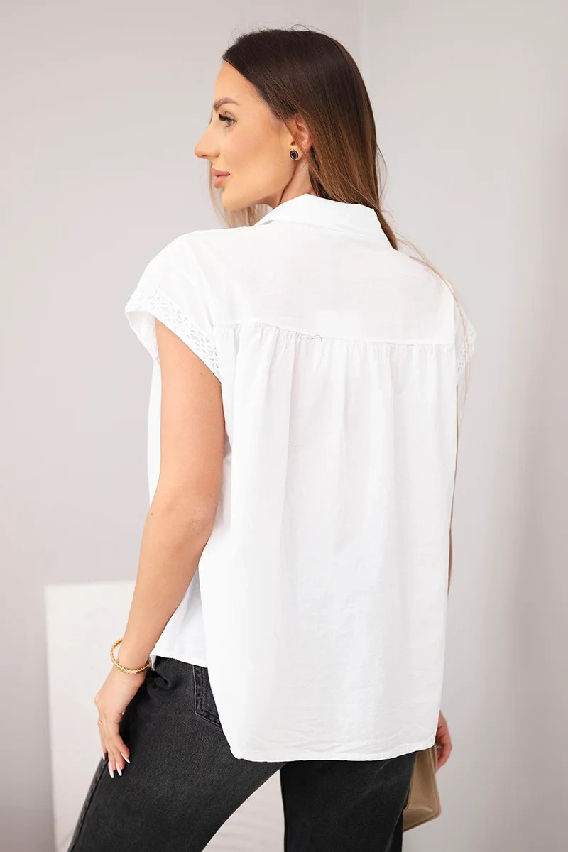 Dámská bavlněná košilová halenka s krajkou a krátkým rukávem bílá