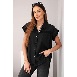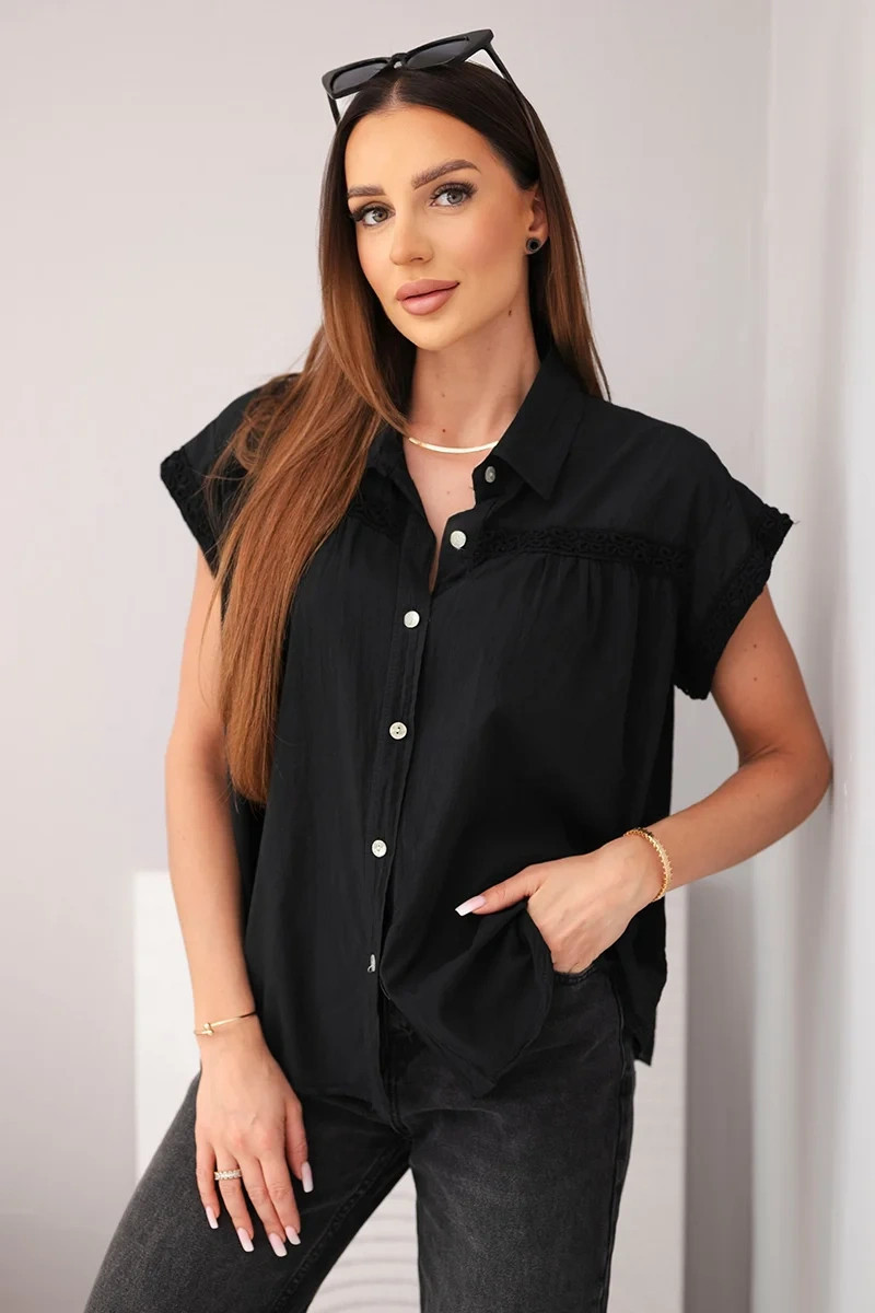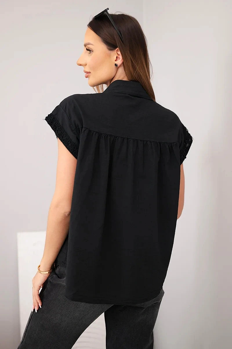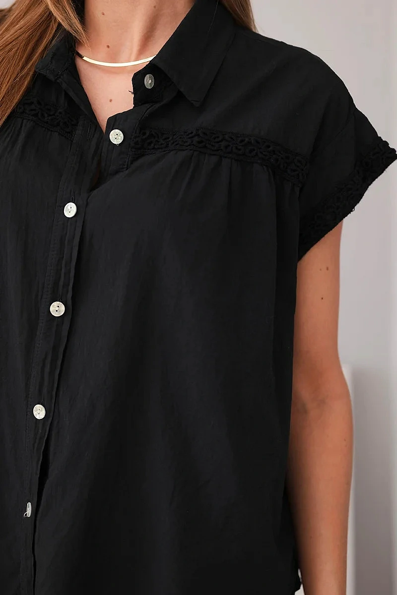 Dámská bavlněná košilová halenka s krajkou a krátkým rukávem černá
