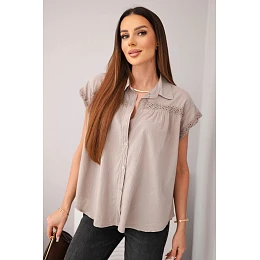 Dámská bavlněná košilová halenka s krajkou a krátkým rukávem fango