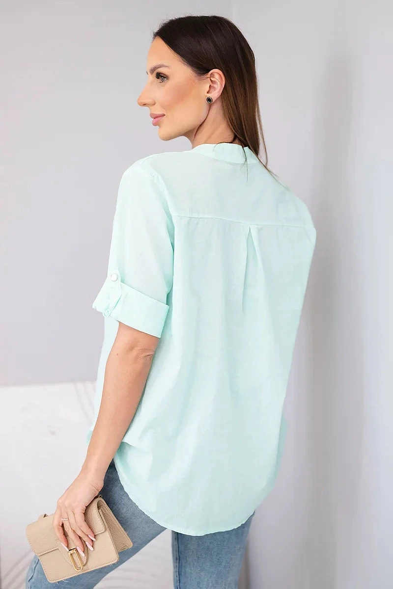 Dámská bavlněná košilová halenka s krátkým rukávem a model 22048813 mátová - K-Fashion