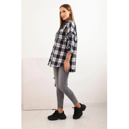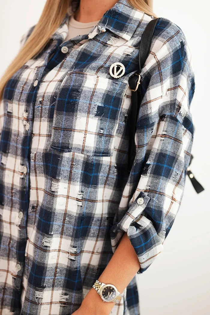 Dámská bavlněná kostkovaná košile s efektem model 21321846 modrá - K-Fashion