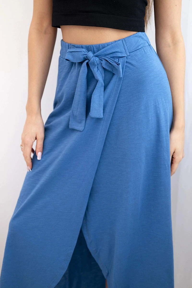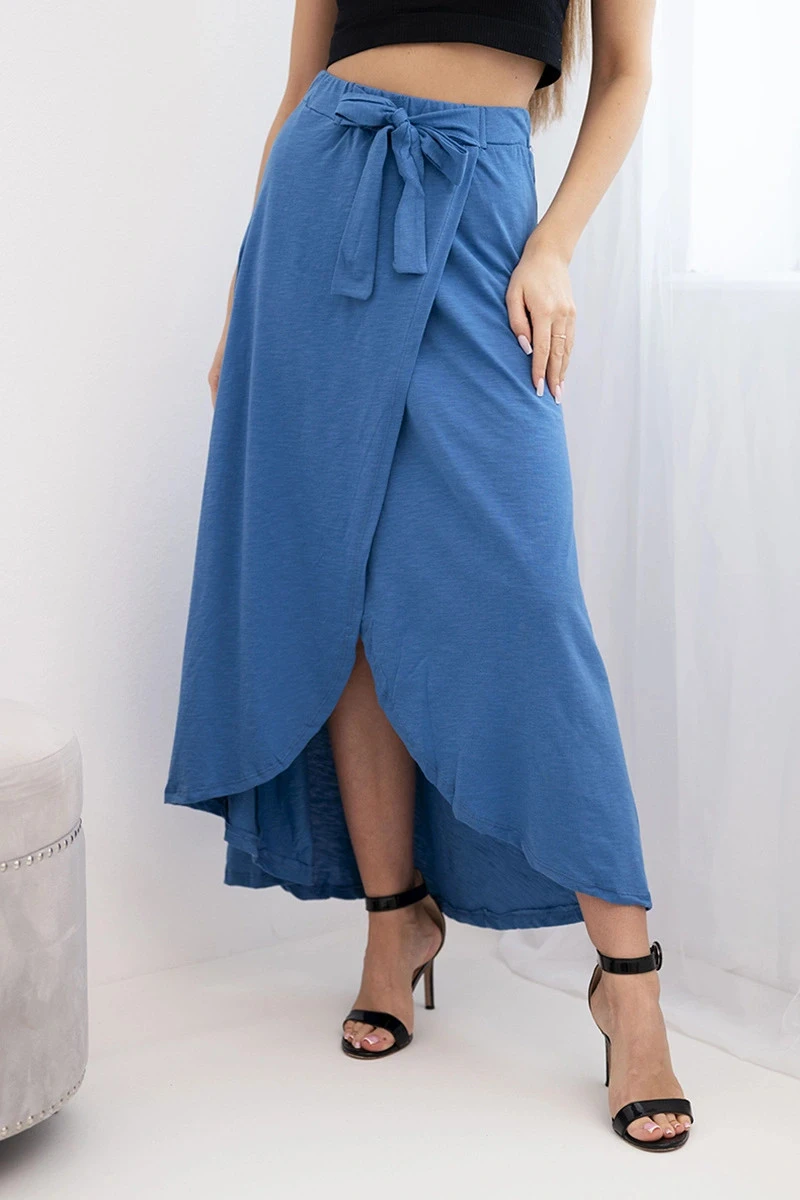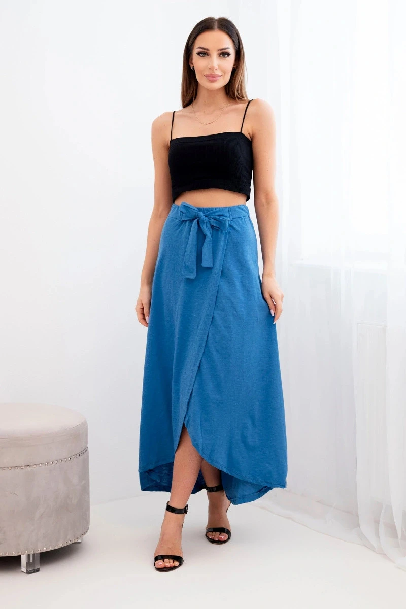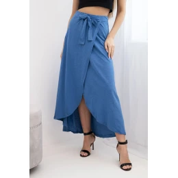 Dámská bavlněná maxi zavinovací sukně s vázáním džínová