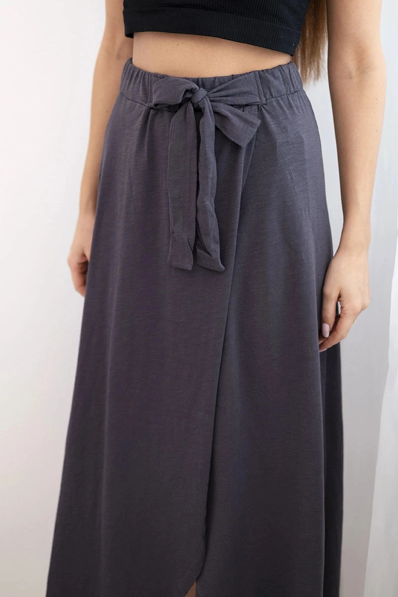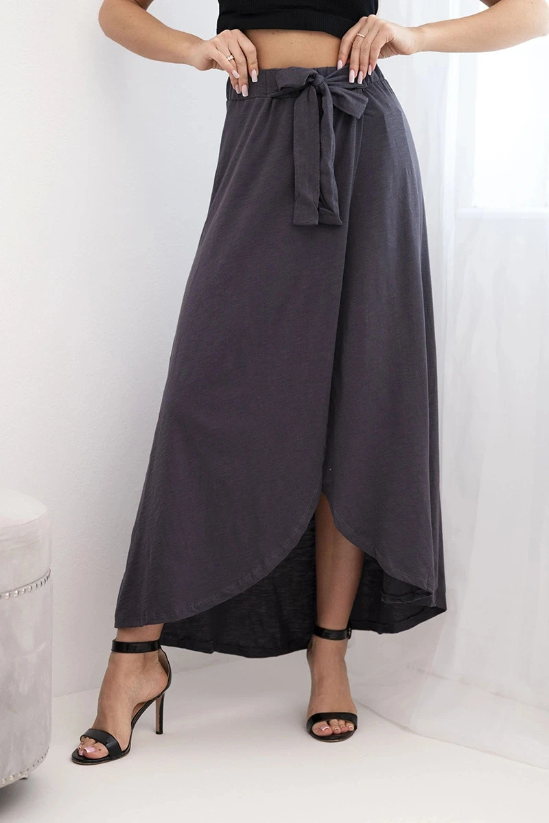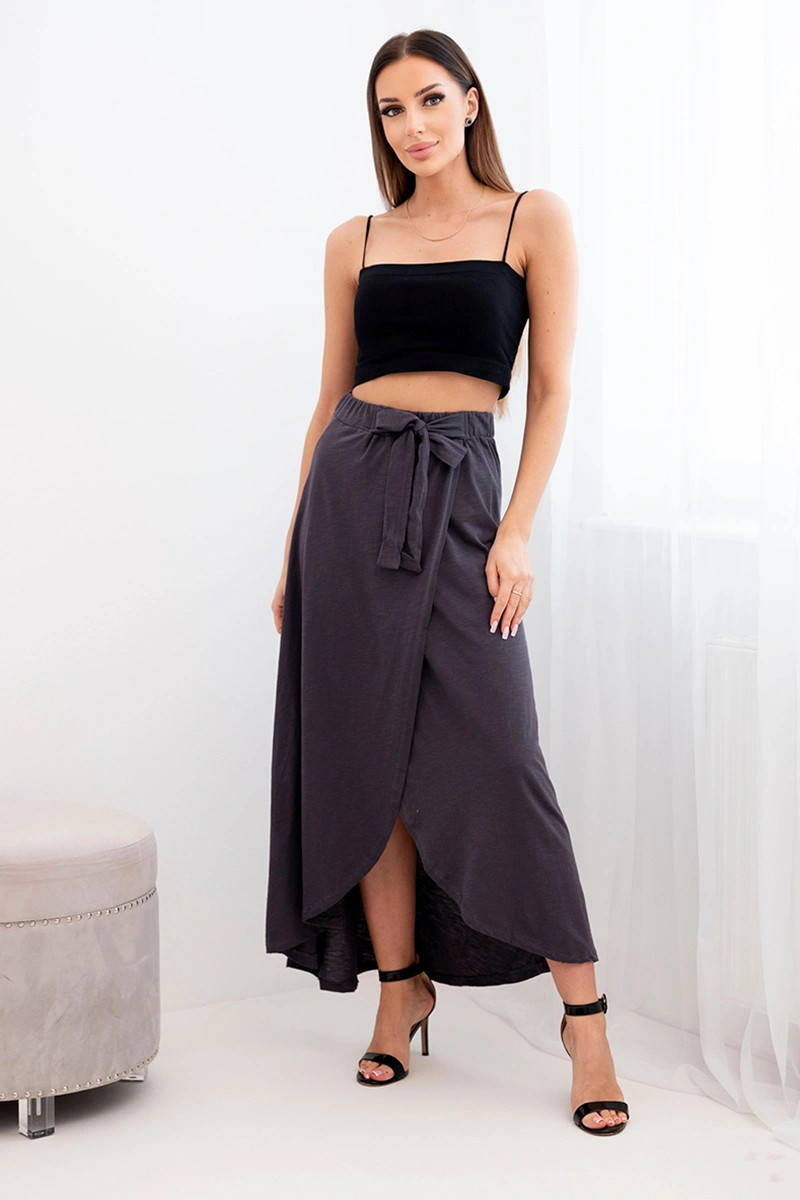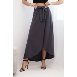 Dámská bavlněná maxi zavinovací sukně se zavazováním grafitová