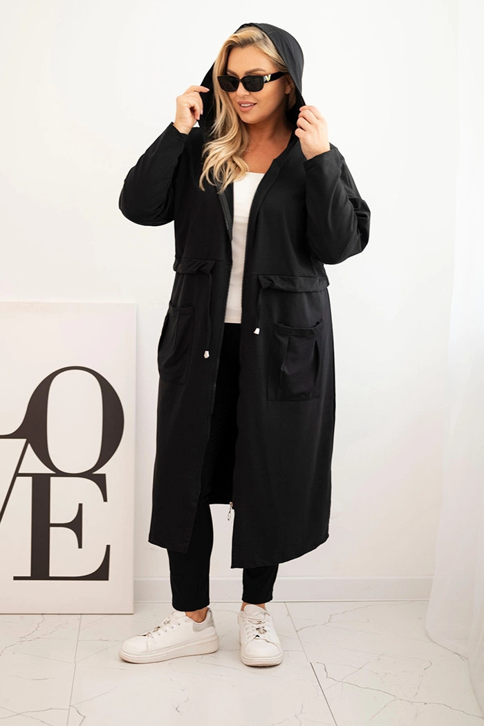 Dámská bavlněná mikina Plus Size s kapucí a kapsami černá