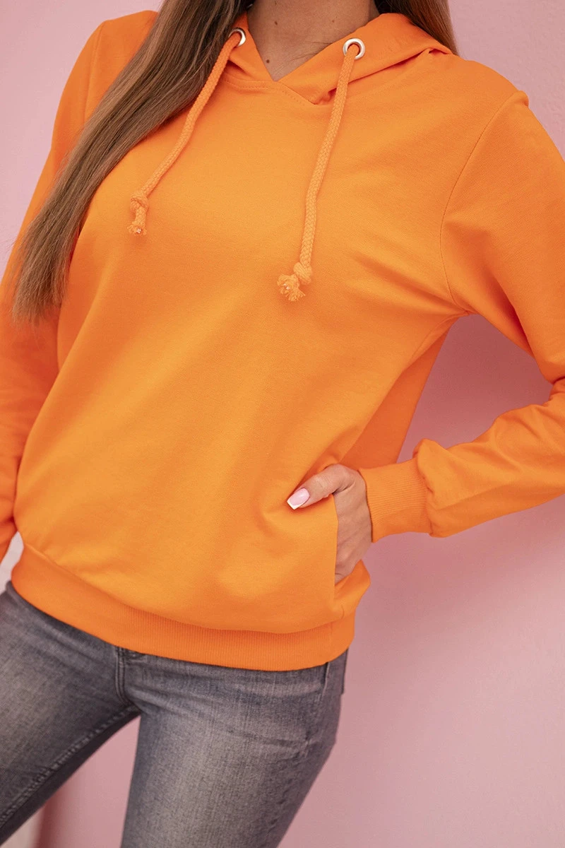 Dámská bavlněná mikina s kapucí a kapsami oranžová