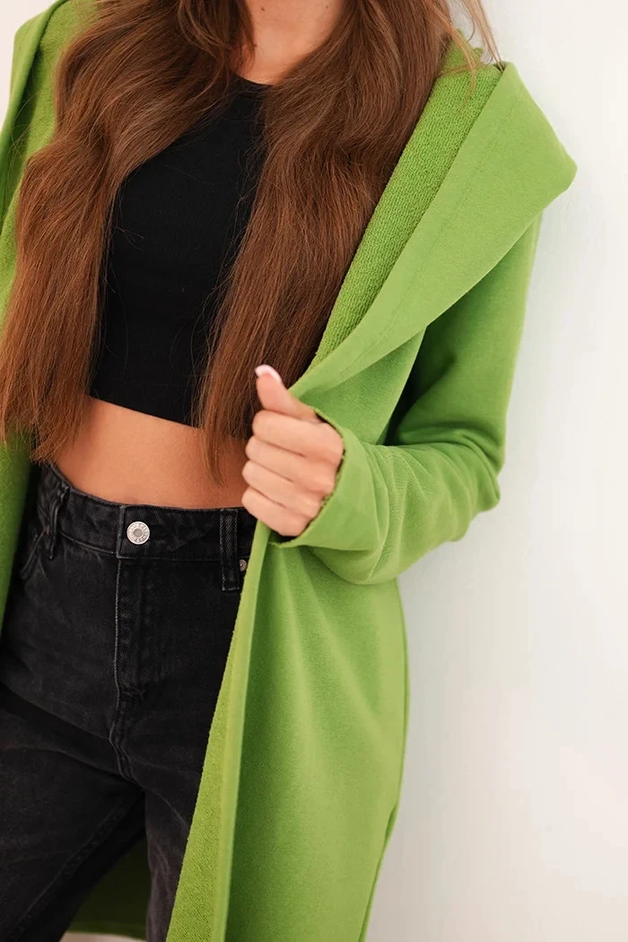 Dámská bavlněná mikina s kapucí a prodlouženým předním dílem olivová