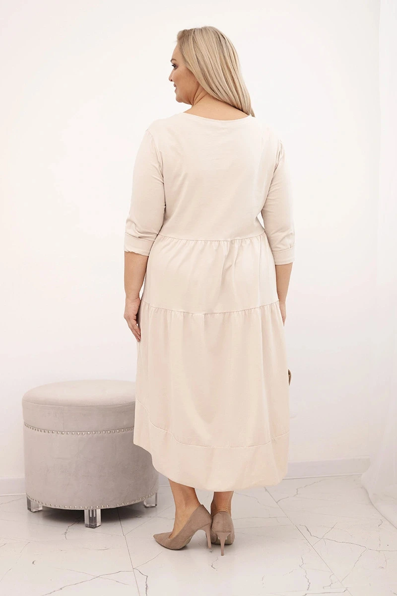 Dámská bavlněná model 21800787 Plus Size s volány a ohrnutými rukávy béžová - K-Fashion