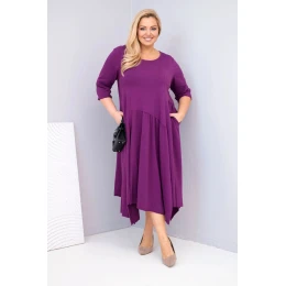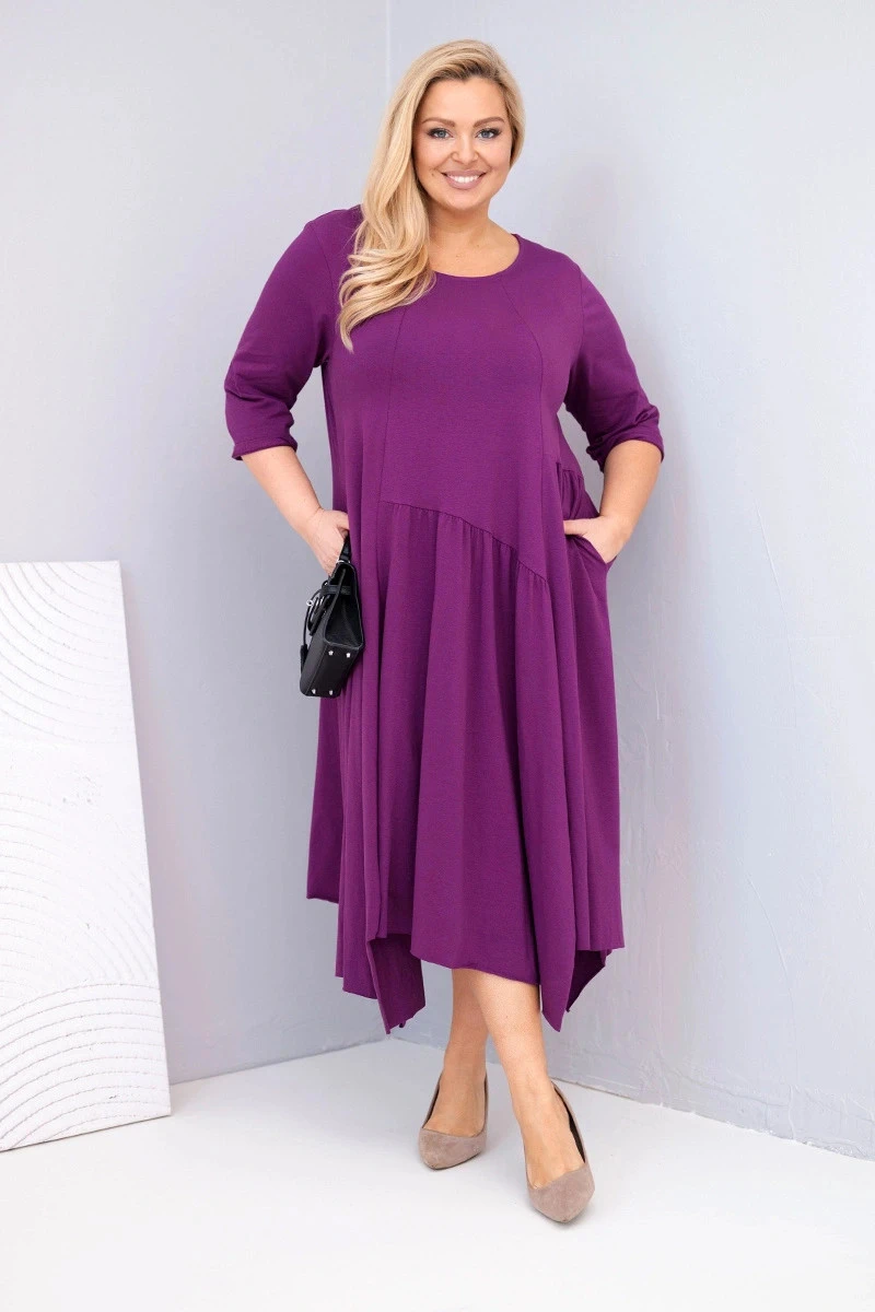 1. Dámská bavlněná model 21881281 Plus Size s asymetrickým lemem tmavě fialová - K-Fashion