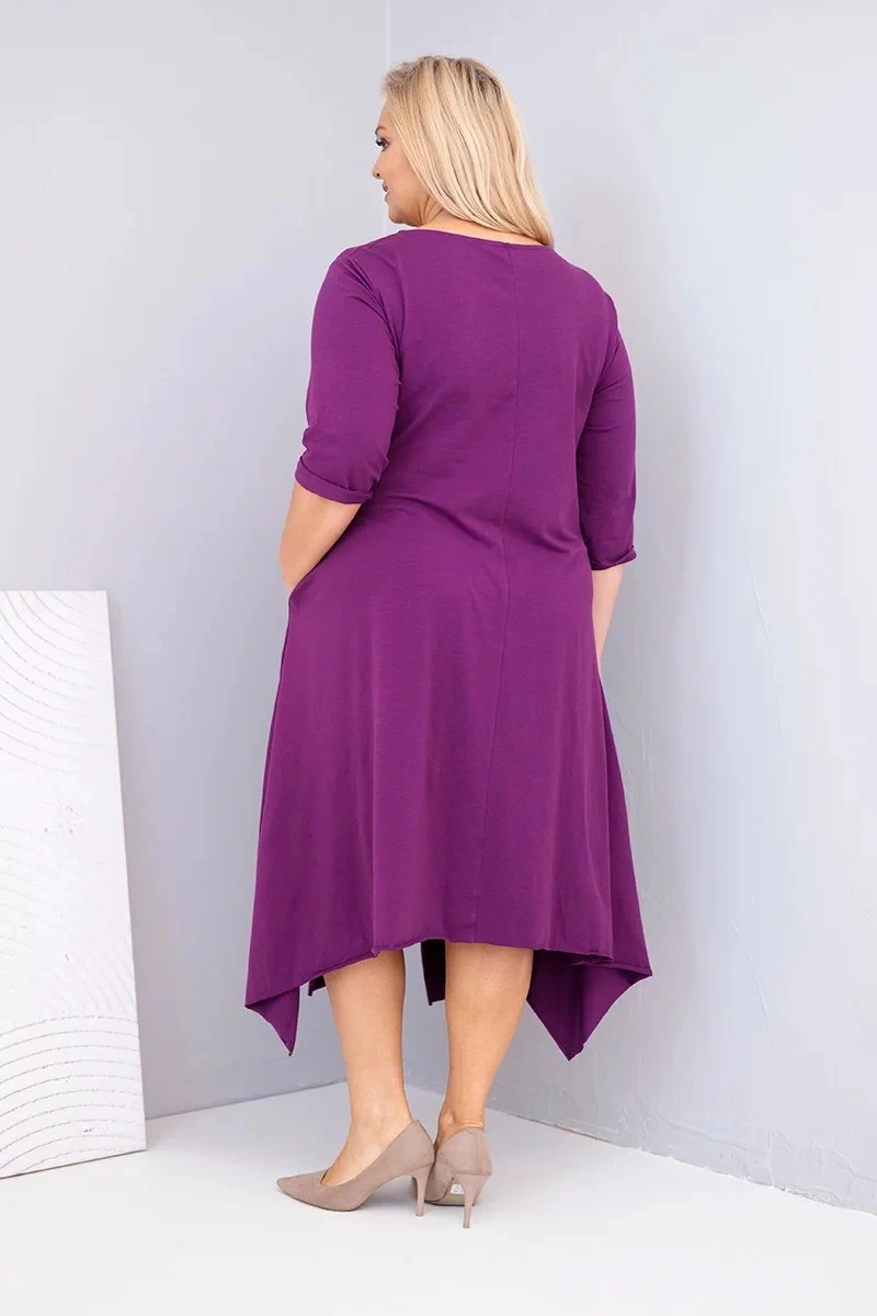 Dámská bavlněná model 21881281 Plus Size s asymetrickým lemem tmavě fialová - K-Fashion
