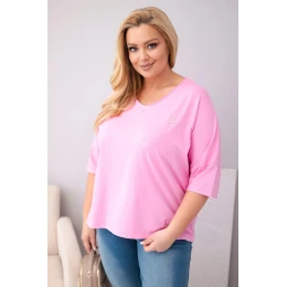 Dámská bavlněná oversize halenka Plus Size s výstřihem do V světle růžová