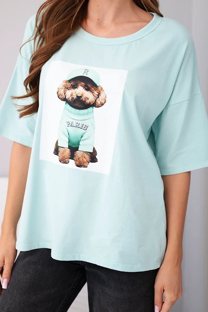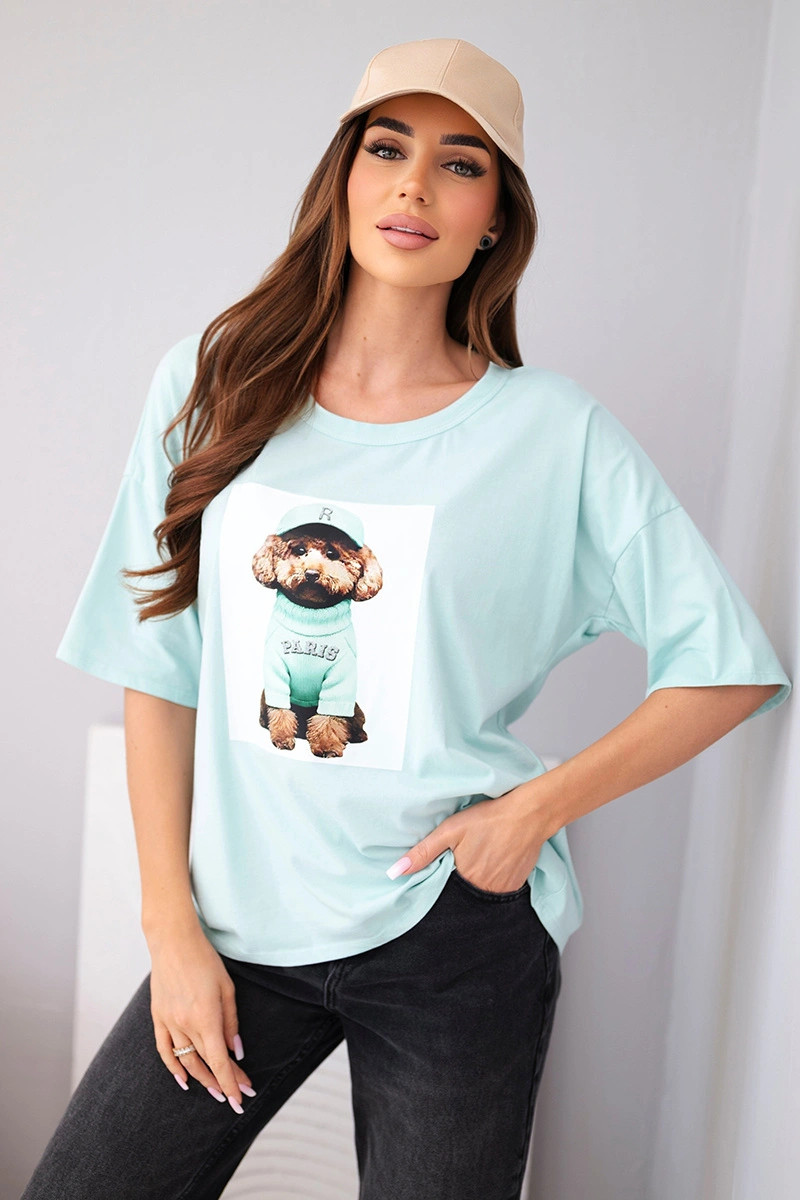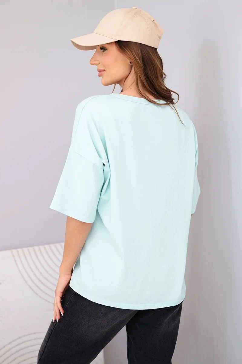Dámská bavlněná oversize halenka s krátkým rukávem a potiskem mentolová