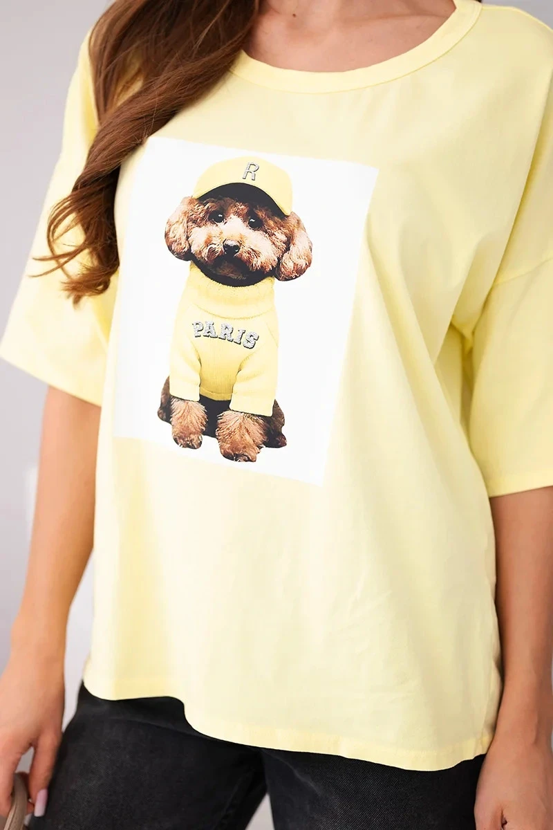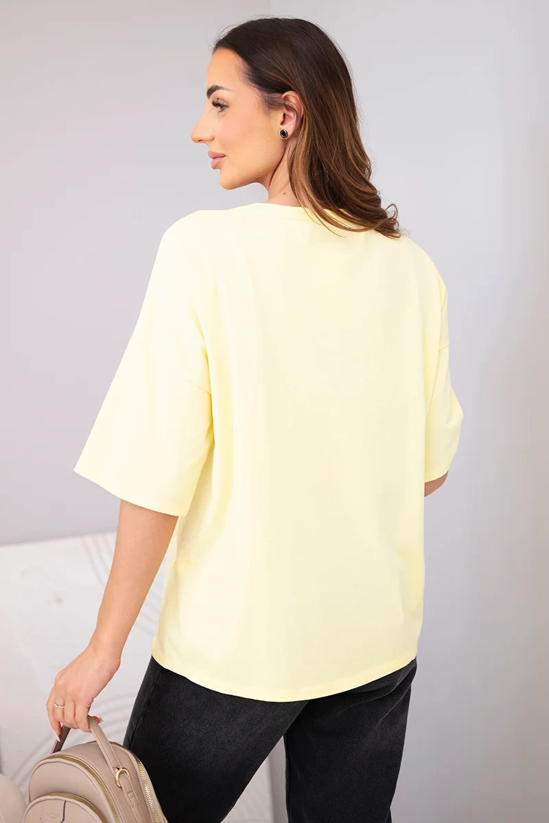 Dámská bavlněná oversize halenka s krátkým rukávem a potiskem žlutá