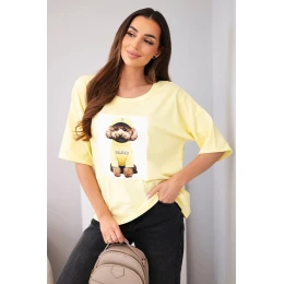 Dámská bavlněná oversize halenka s krátkým rukávem a potiskem žlutá