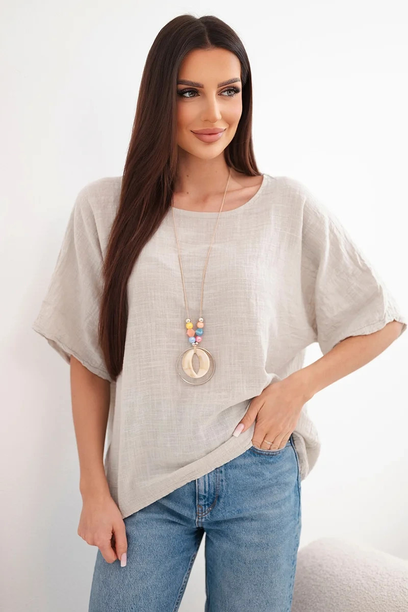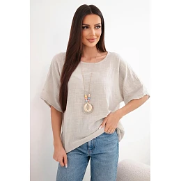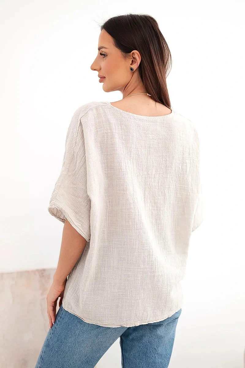 Dámská bavlněná oversize halenka s krátkým rukávem béžová