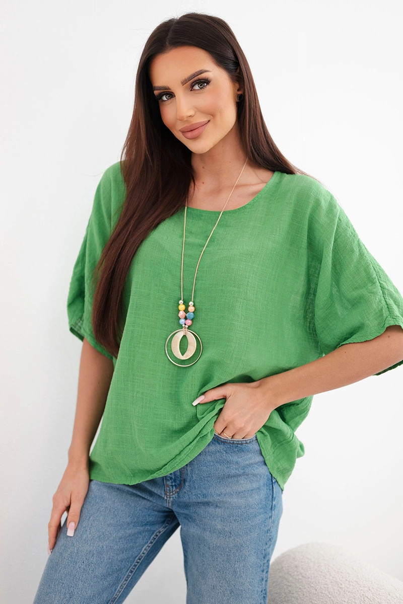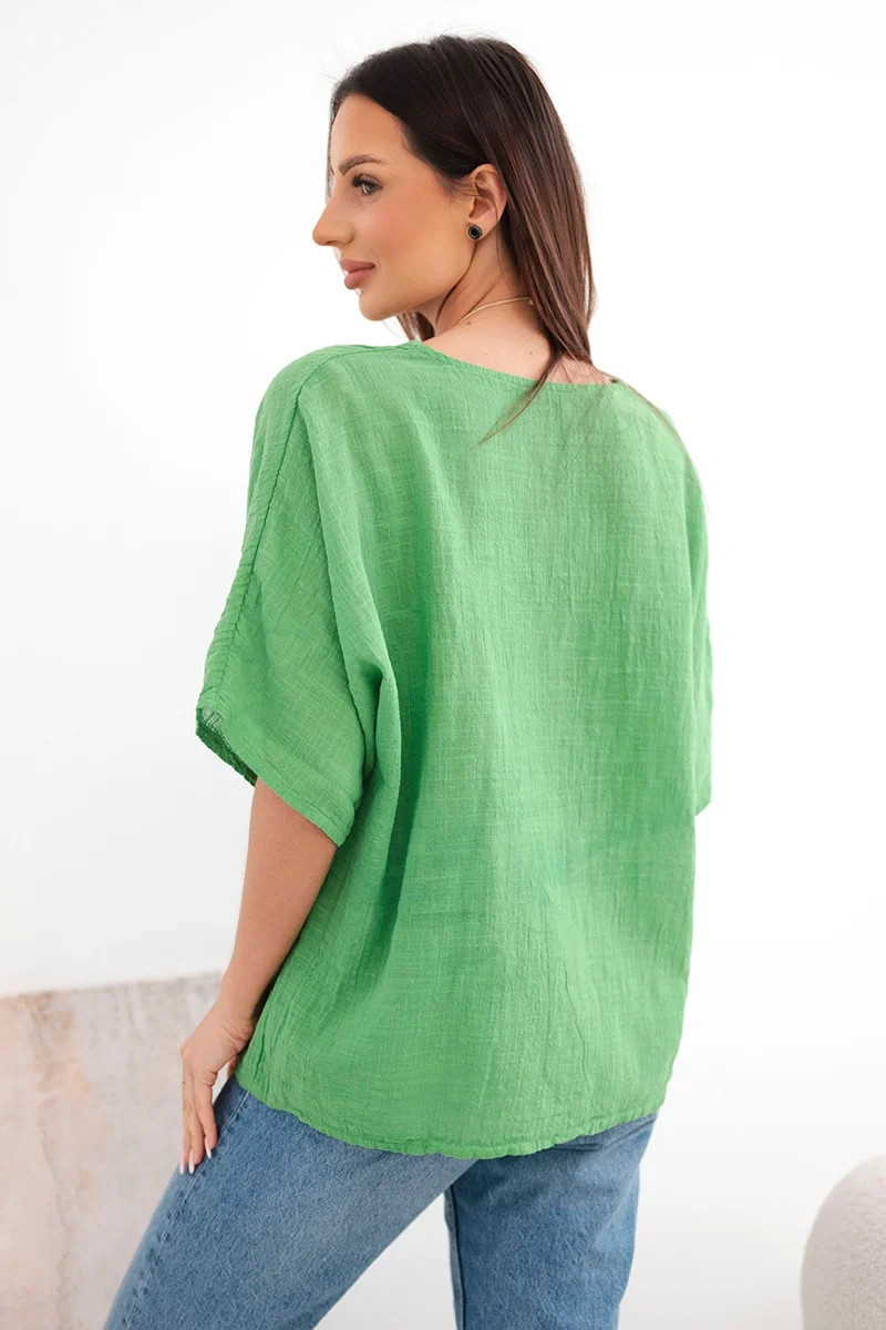 Dámská bavlněná oversize halenka s krátkým rukávem zelená
