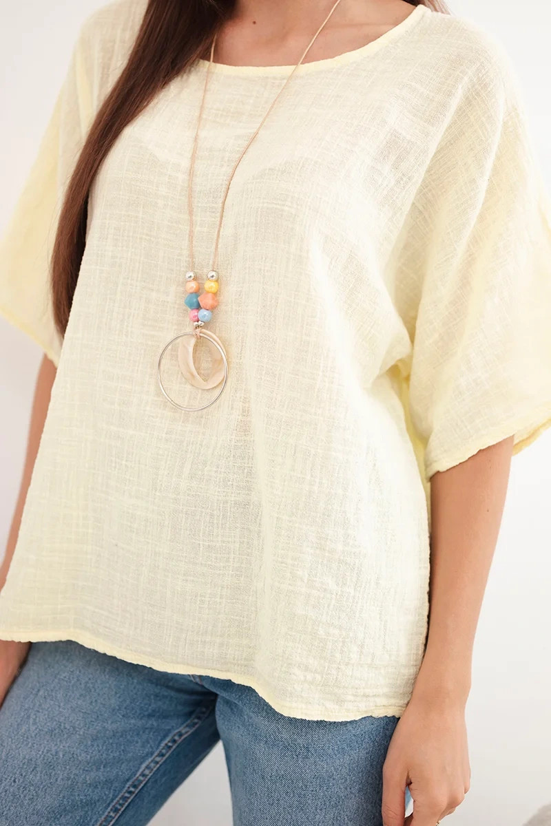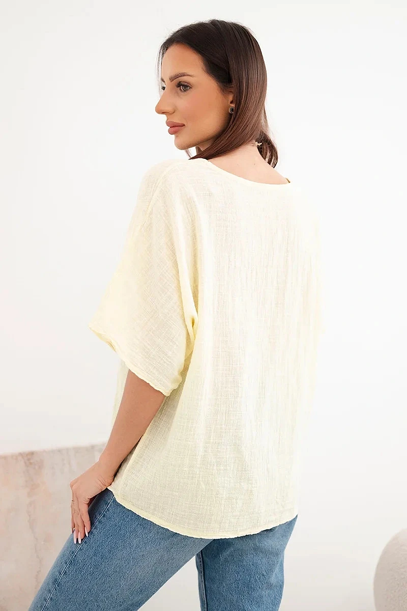 Dámská bavlněná oversize halenka s krátkým rukávem žlutá
