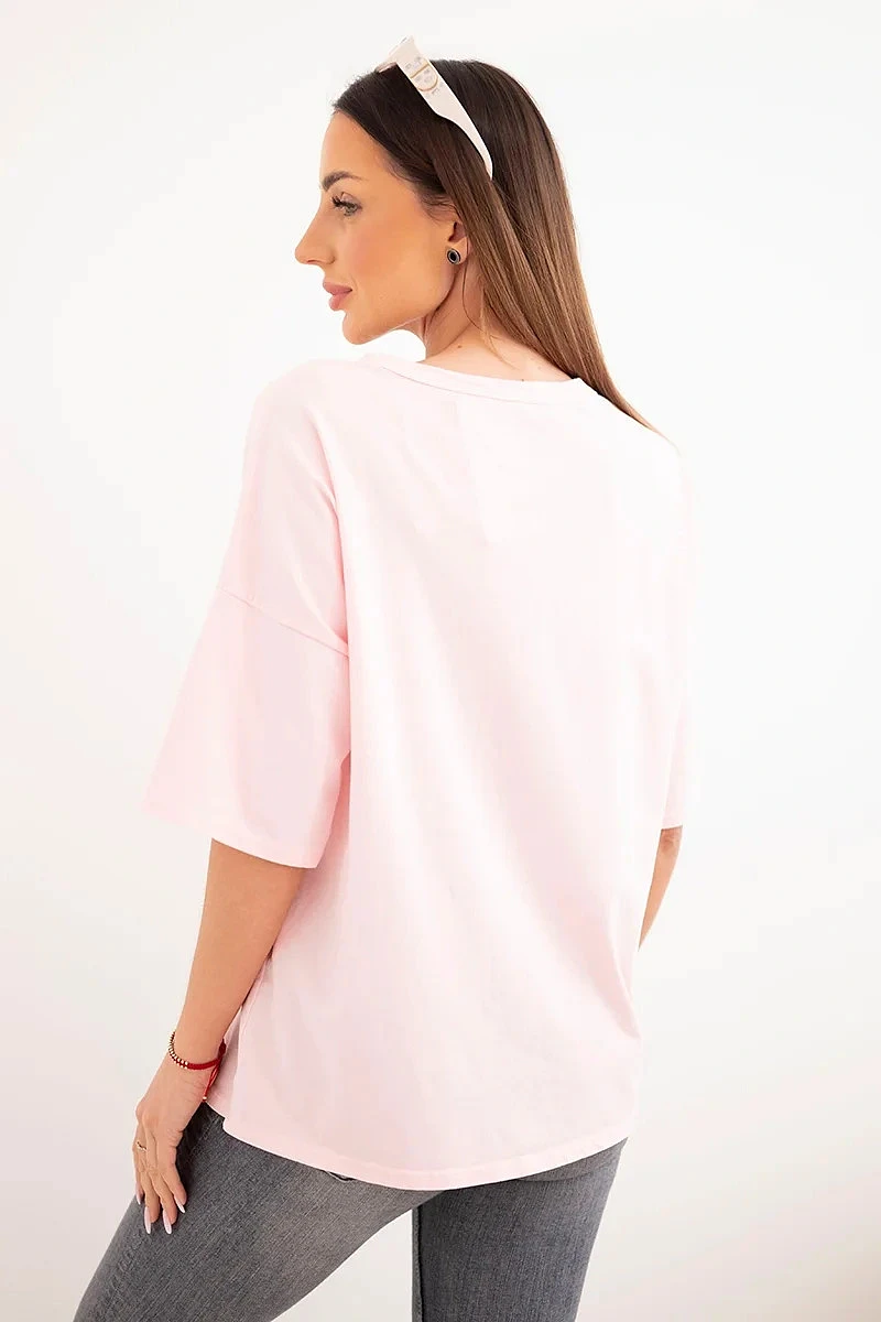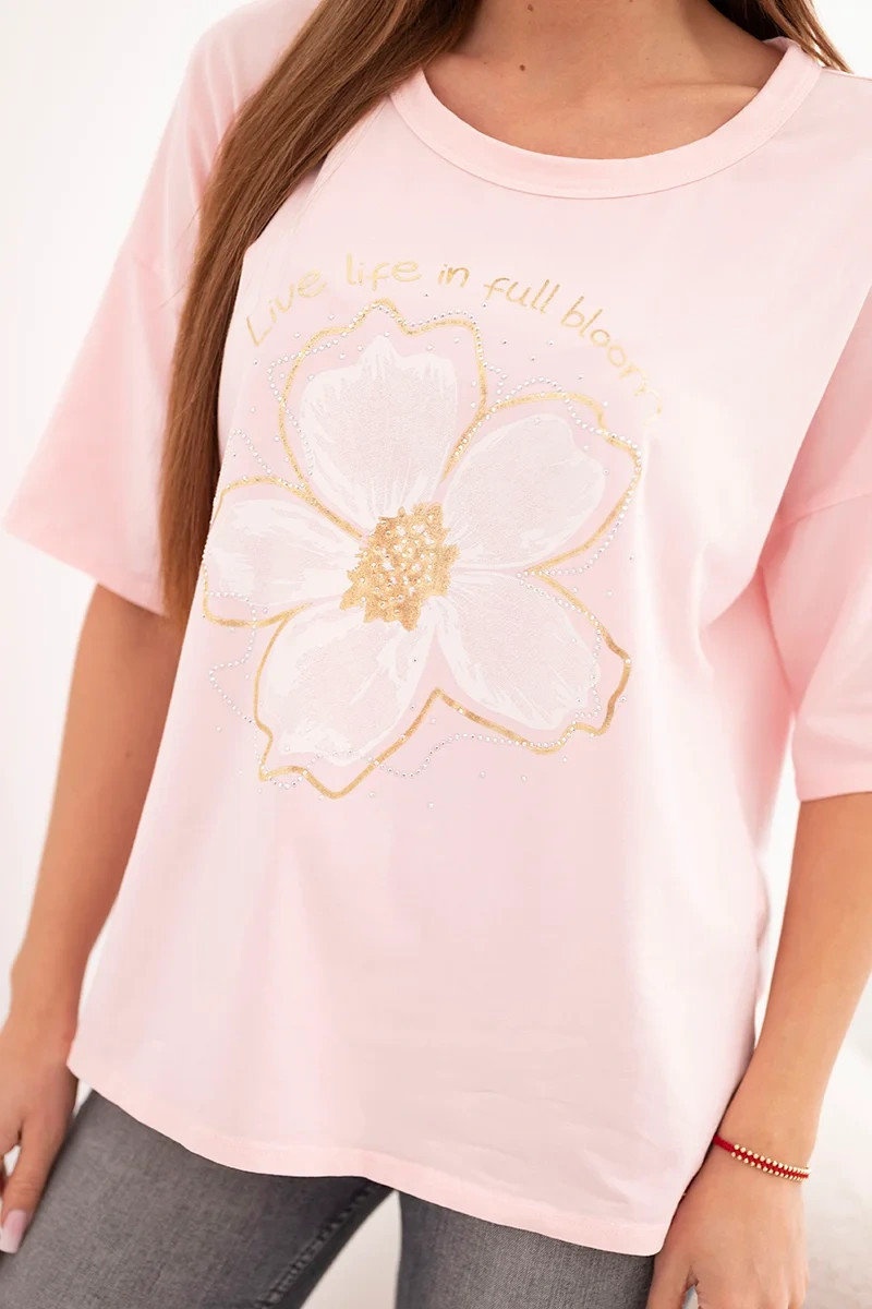 Dámská bavlněná oversize halenka s květinovým potiskem bonbónově růžová