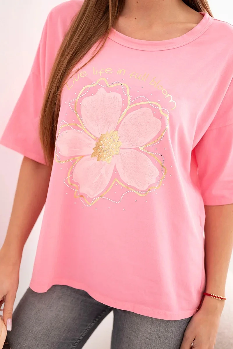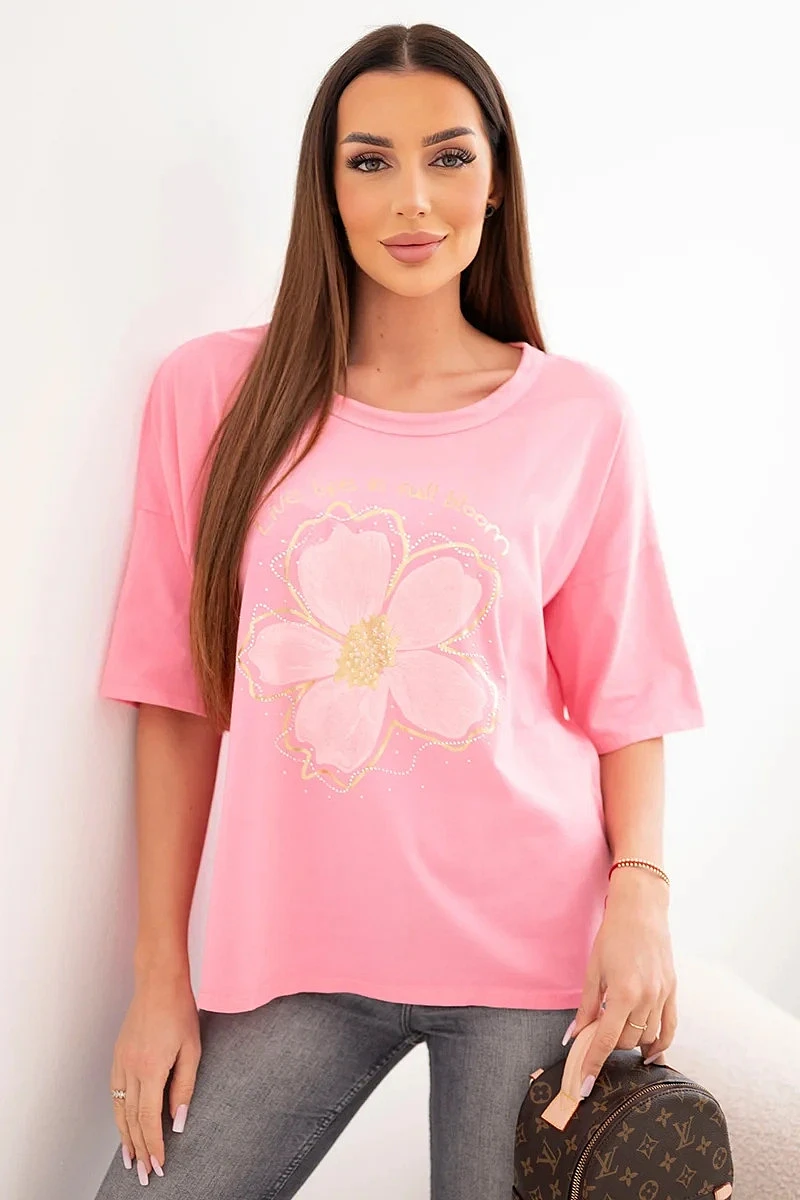 Dámská bavlněná oversize halenka s květinovým potiskem světle růžová