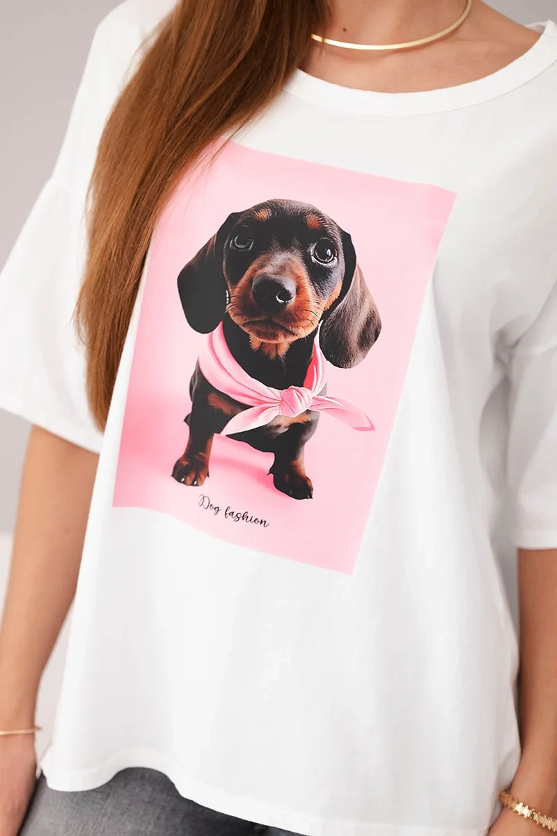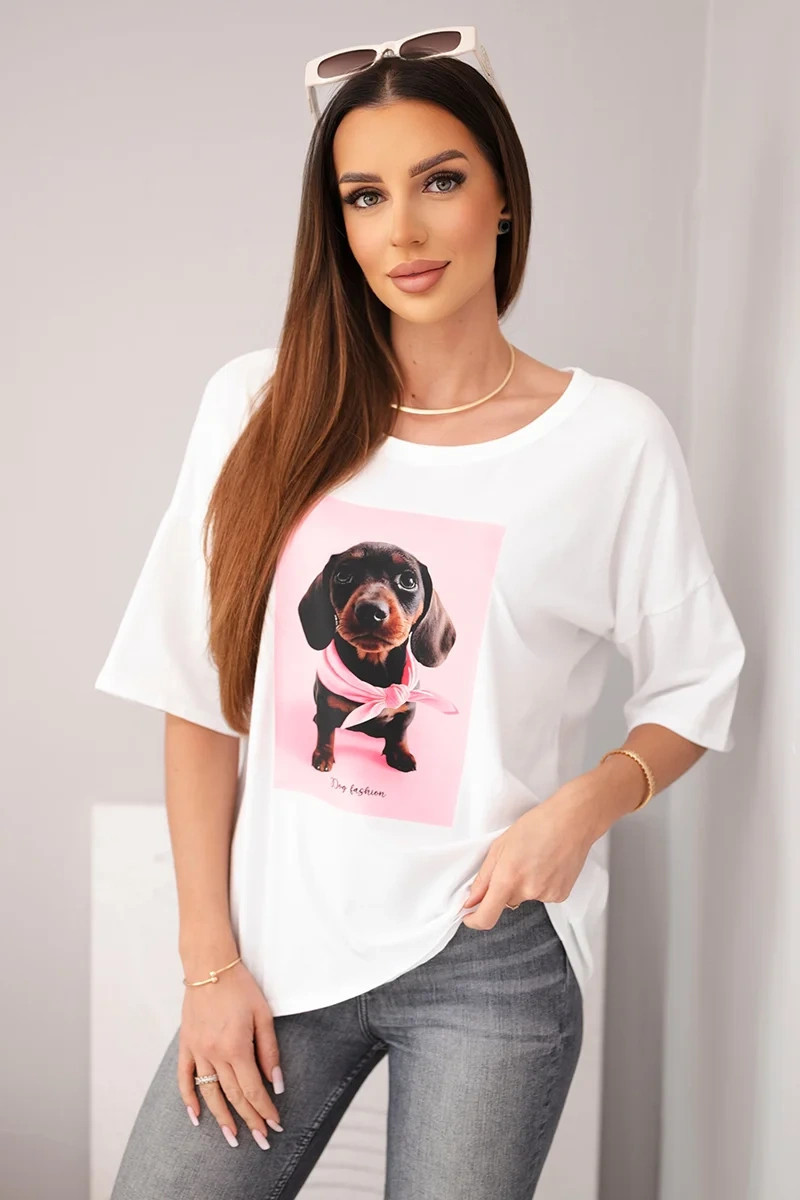 Dámská bavlněná oversize halenka s potiskem "Dog Fashion" bílá