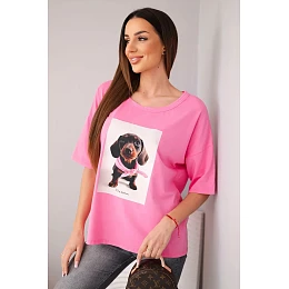 Dámská bavlněná oversize halenka s potiskem "Dog Fashion" růžová